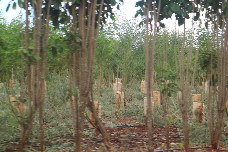 | There are also small fields of cut flowers and rows of tropical fruit trees. |