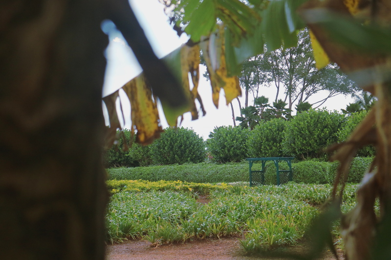 | After exiting the train station, you walk through a garden of different pineapple varieties. |