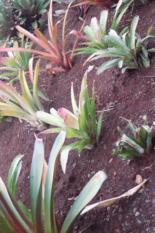 | There are many bromeliads in the landscaping here, which is fitting because pineapples are in the bromeliad family. |